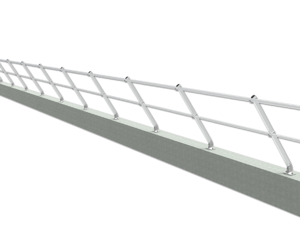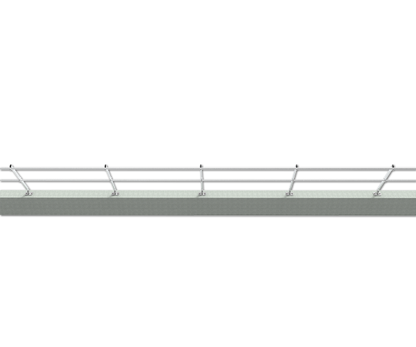 The inclined permanent railing system is designed for areas where non-penetrating guardrail would not work properly.The parapet railing system allows for the installer to connect to the existing parapet without penetrating the roof membrane and provides a barrier that does not become a trip hazard while working around equipment.permanent guardrail