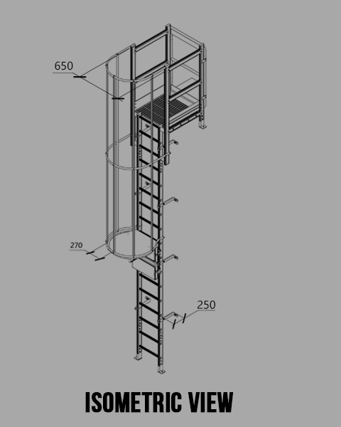⑤ The rise of rung is 250mm ⑥ The depth of wall bracket is 250mm
