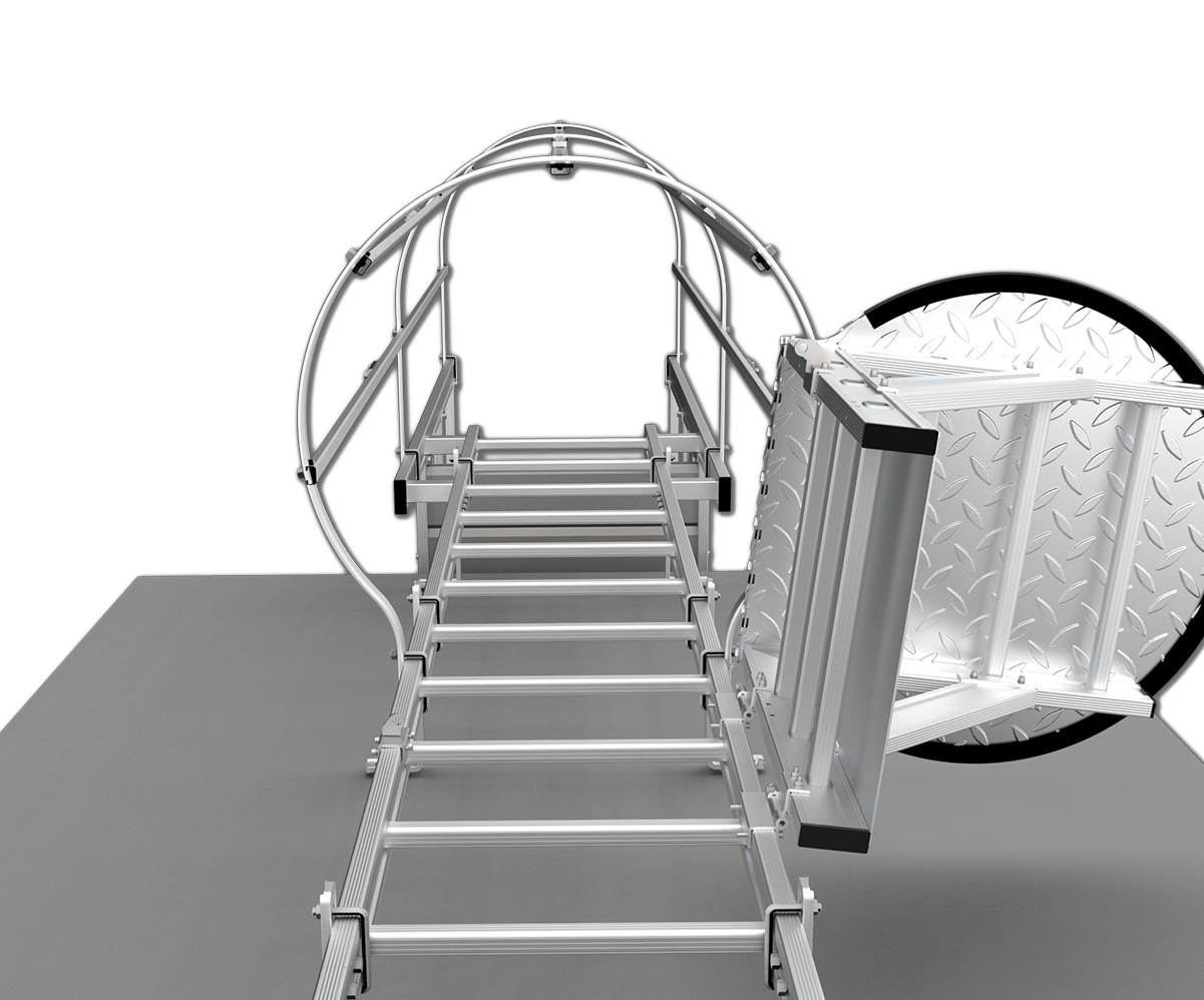 When a fixed ladder extends more than 20 feet, you are required to have a cage to meet safety requiements. It works perfectly with personal fall arrest system.