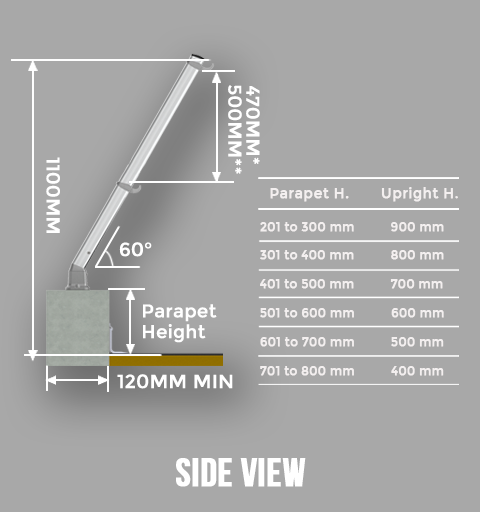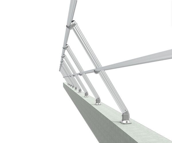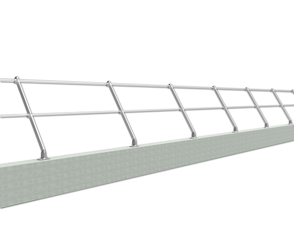 The inclined permanent railing system is designed for areas where non-penetrating guardrail would not work properly.The parapet railing system allows for the installer to connect to the existing parapet without penetrating the roof membrane and provides a barrier that does not become a trip hazard while working around equipment.permanent guardrail
